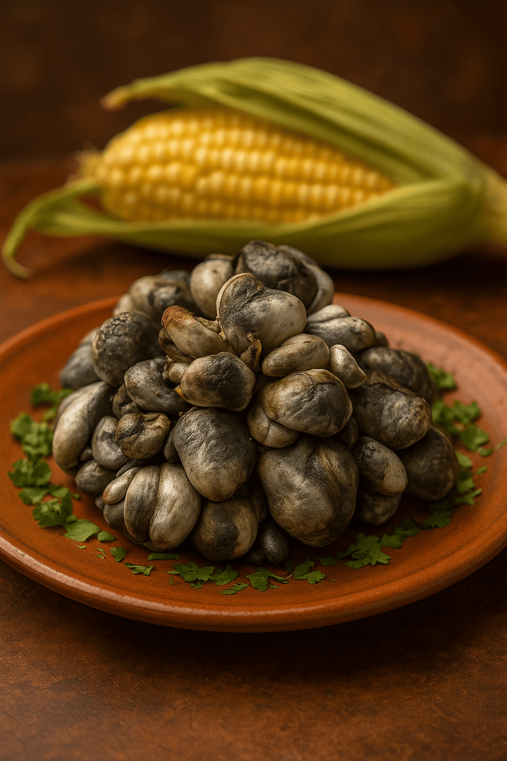 외형상 ‘썩은 옥수수’로 보일 수 있지만, 멕시코인들은 이를 “자연이 준 별미”라 칭합니다. 트러플처럼 진한 흙내음과 옥수수 고유의 단맛, 버섯의 풍미가 결합된 복합적인 맛을 제공합니다.